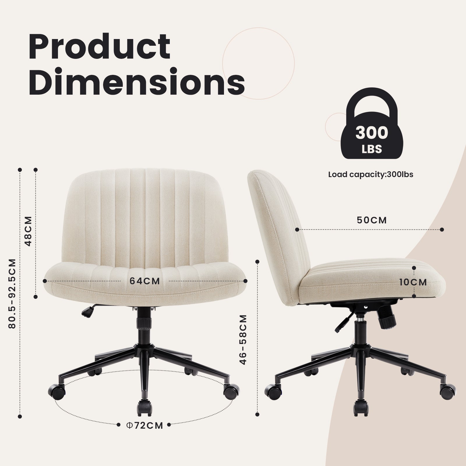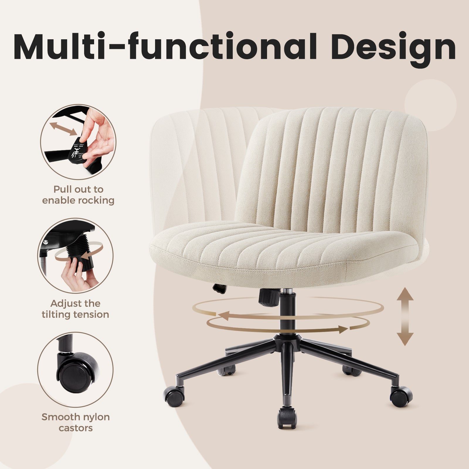 - 【Fashionable Armless Office Chair】 Different from traditional office chairs, we removed its two armrests and unnecessary decorations, combining comfort and fashion perfectly. It can easily match any decor and create a comfortable and elegant atmosphere,suitable for various scenes such as offices, bedrooms, study rooms, living rooms, dormitories or vanity.