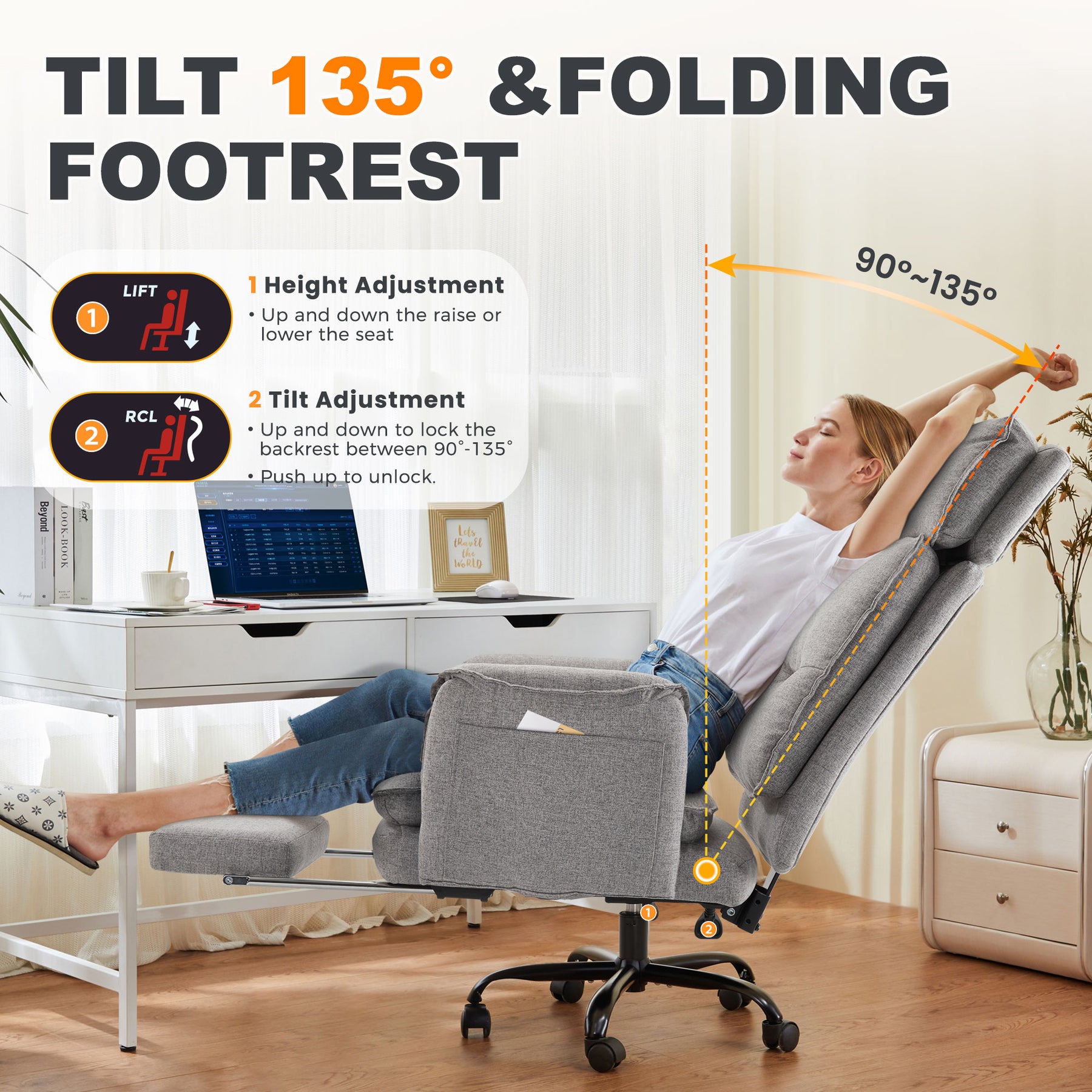 Ergonomic Office Chair, 227 kg, XXL Executive Chair with Footrest, Desk Chair with Height-Adjustable Headrest, 135° Tilt Function, Swivel Chair, Rocker Function for Home Office