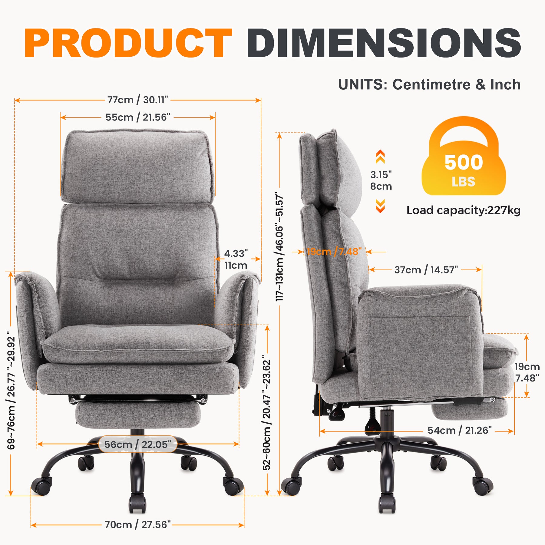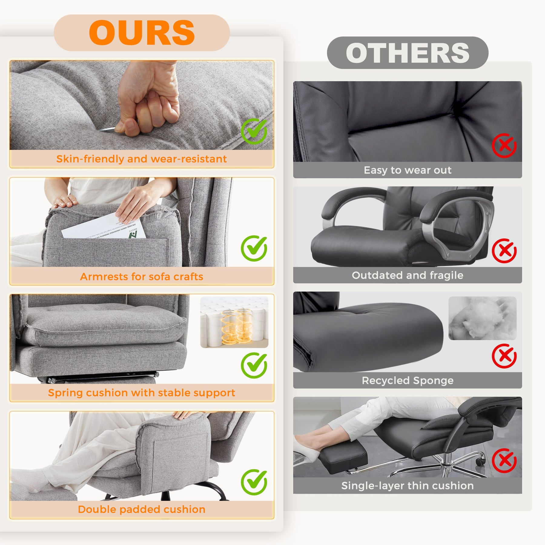 • Premium Leather & Hidden Footrest: High quality PU leather, stain resistant and easy to clean - Built-in footrest for relaxed breaks in recliner mode, ideal for home office and relaxation.