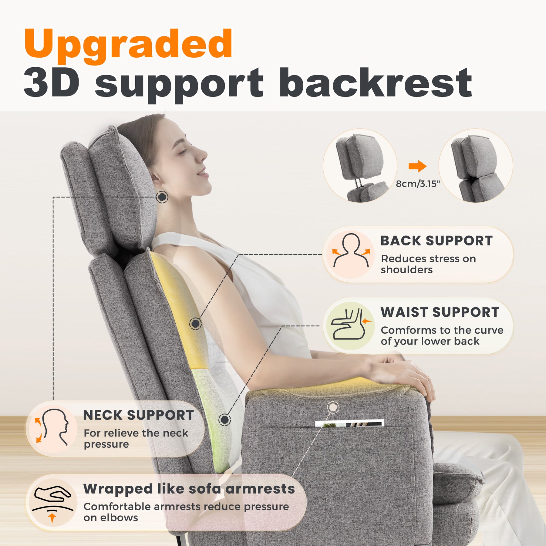 • Ergonomics against back pain: 135° adjustable backrest with synchronous mechanism and individually adjustable headrest - relieves spine and neck, perfect for long periods of sitting in the office or gaming.