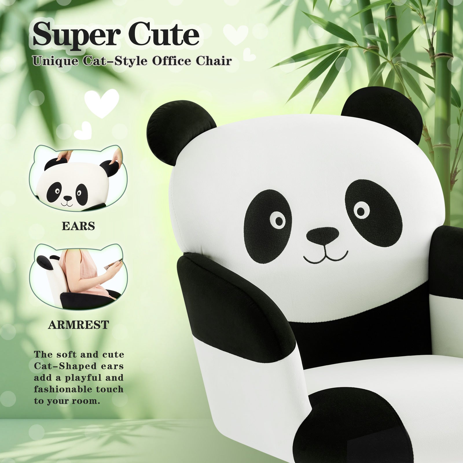- 1. Playful Panda-Themed Design & Premium Comfort This modern accent chair features adorable Panda-inspired embroidery on the backrest, crafted with skin-friendly premium fabric. Elevate your bedroom vanity, home office, or living space with unique personality—far beyond generic office chairs. Perfect as a vanity stool, teen study chair, or stylish decorative seating.